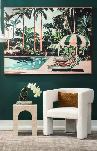 The secret to nailing this balance? Layering. Start with a neutral base - clean walls, simple furniture - then build on it with maximalist elements. Darren Palmer’s art collections are a perfect example of this balance, offering striking yet sophisticated pieces that can be seamlessly layered into a minimalist foundation to add richness and depth. Whether it’s a bold abstract or a moody, textural print, his work captures that sweet spot between statement-making and effortless styling.