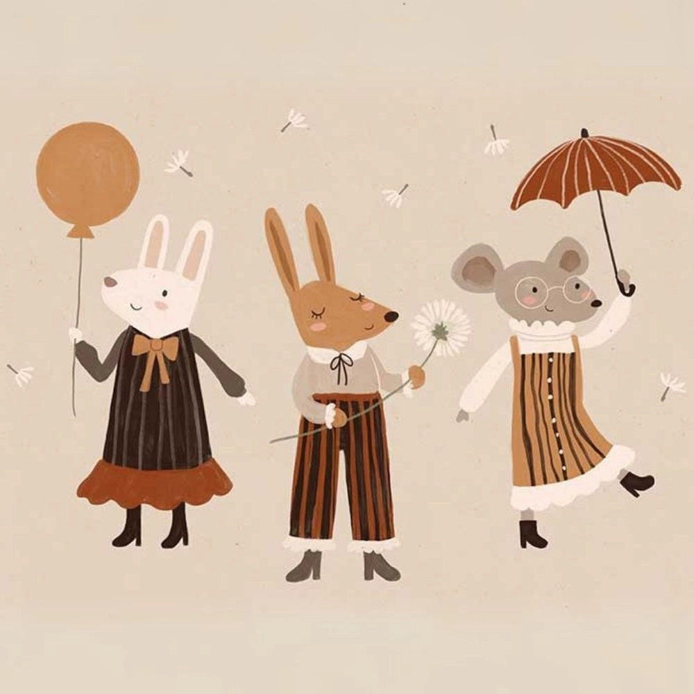 Friendly characters, simple shapes, and children’s wall art with light, breathable colour create spaces that feel playful and restful at once. Perfect for nurseries, reading nooks, and shared rooms, Little Tails is a collection that grows with them with natural textures and gentle patterns.