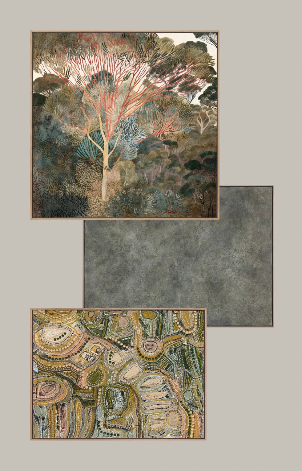 This year’s painting trends are fearless, playing with colour blocks, abstract swirls, and unexpected palettes. Aboriginal art is one of our favourite examples of bold colours in use, with intricate patterns to match. These artworks also bring a special cultural element to a space, communicating Dreamtime stories from Aboriginal artists.