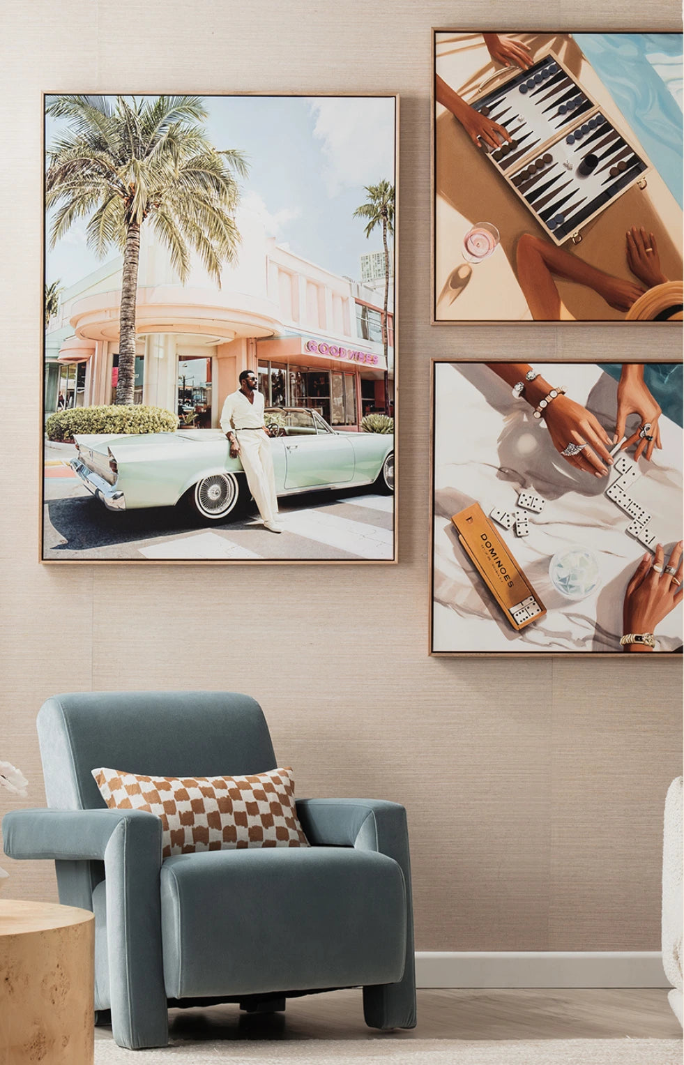 • Size matters when it comes to wall art. A large-format print can transform a vast living space into a curated sanctuary, while smaller, carefully grouped pieces create an intimate gallery wall. Let your space guide your art selection and be bold enough to push boundaries.