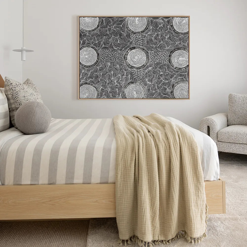 From striking black and white Aboriginal art that tells powerful cultural stories to modern pieces perfect for any black and white room theme, we offer an exceptional range to suit every style. Create sophisticated living room white and black combinations, or embrace bold black and white room ideas that make a statement.