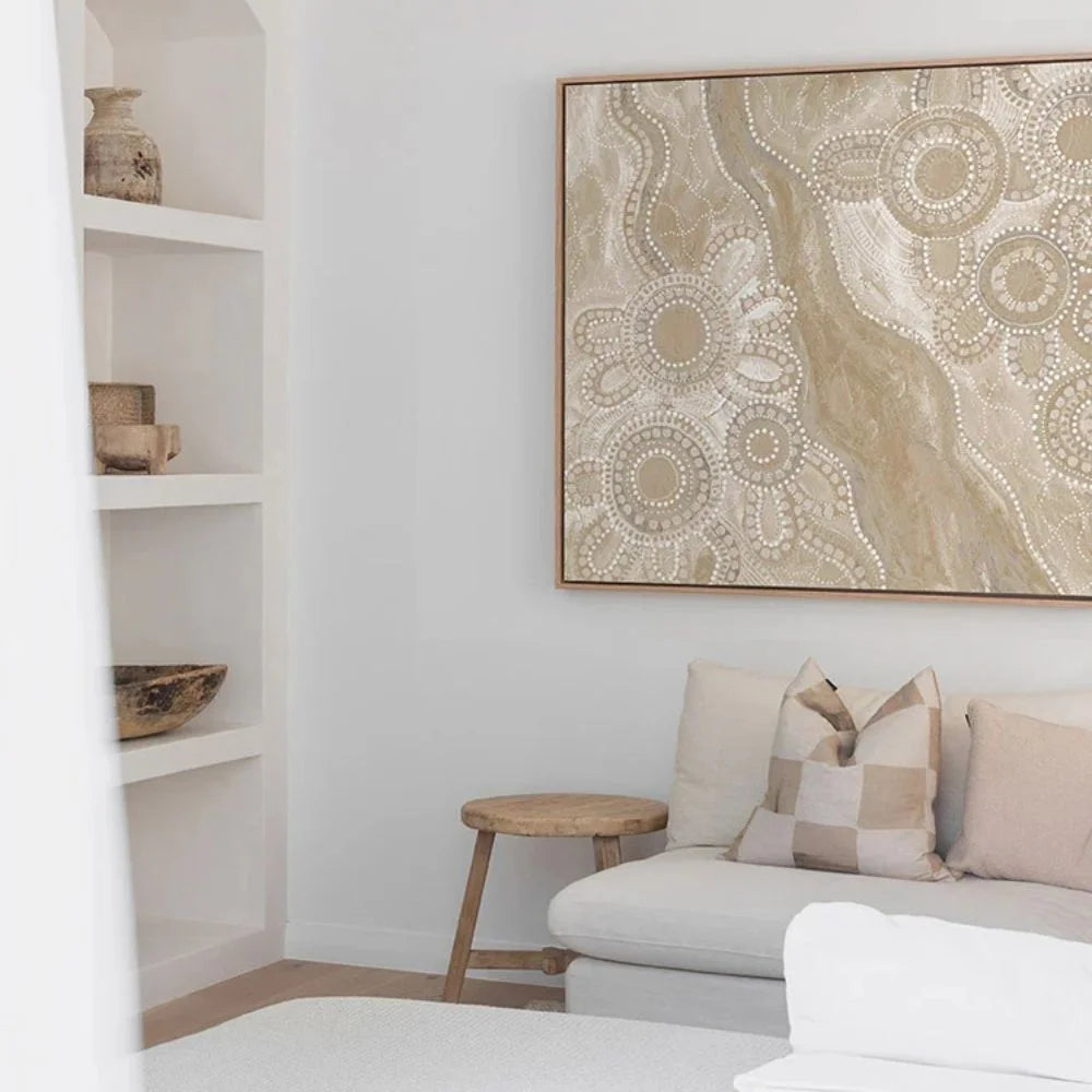 From beautiful neutral Aboriginal art celebrating the natural tones of Australian landscapes to modern pieces perfect for neutral home decor and living room ideas, we offer an exceptional range to suit any vision. Create living room ideas with neutral colours that feel both warm and sophisticated, with neutral colour living room touches and warm neutral home decor that never goes out of style.