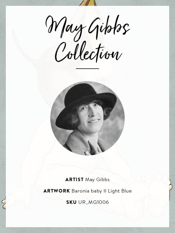 Perfect for nurseries, children’s bedrooms, or spaces yearning for a playful yet refined touch, this artwork brings May Gibbs’ beloved storytelling to life. The Boronia Baby’s sweet, curious expression invites a sense of innocence and whimsy, evoking a connection to Australia’s natural beauty and heritage.