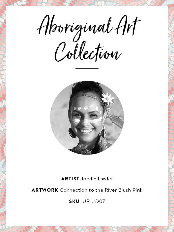 Connection to the River Blush Pink Canvas Art Print - Allow new life into your space with this enthralling and calming Aboriginal Wall Art featuring traditional Aboriginal Art techniques. Like a birds-eye-view of a flowing river, this Aboriginal Art print brings a sense of movement to your space, giving it a dynamic feel. A soft palette of blush pink shades and muted blue tones makes this piece easy to incorporate with many interior styles.