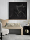 Contours Charge Canvas Art Print - "Contours Charge" commands attention with its sense of masculine elegance. Inspired by the contours of a charging bull, this piece is an integral part of this masculine art collection by Darren Palmer, bringing to life the raw power of the bull, yet appreciating its softness and beauty. Using light grey outlines against a dark charcoal background, each bold line and abstract smudge plays on minimalist simplicity, making a striking impact, where you're invited to engage with the essence of strength and motion suspended in time.