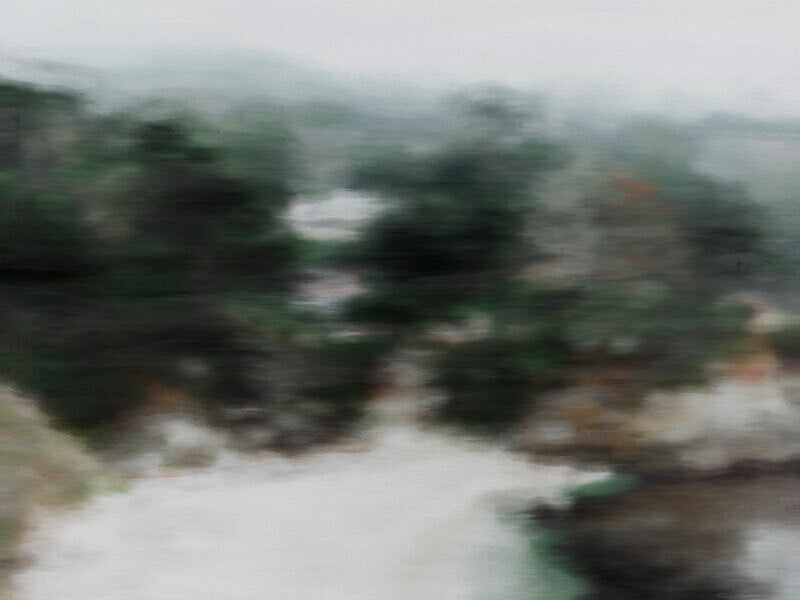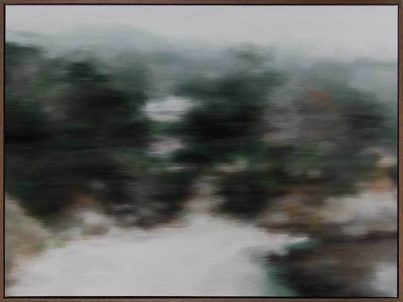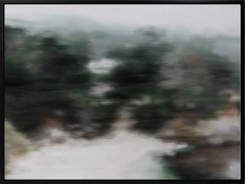 In the Wilderness Canvas Art Print: A blurred landscape artwork featuring dark green, brown and beige trees and a soft grey path. 2019 AUTUMN/WINTER COLLECTION: ODYSSEY
