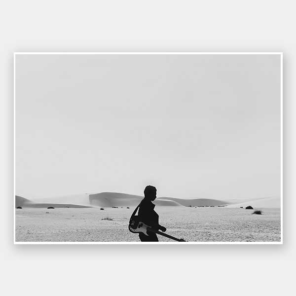 The Boss - A black and white photographic image of a man and his guitar in the desert.