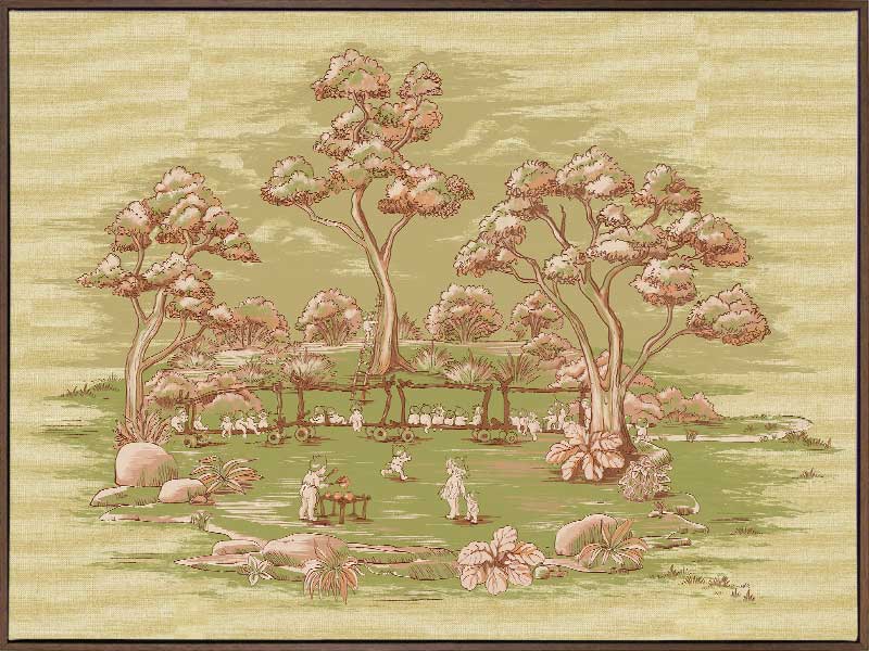 Muted pastel greens and soft neutral tones evoke a serene, yet whimsical atmosphere. Perfect as wall art for children’s bedrooms or family spaces, this piece celebrates community and nature, bringing a sense of togetherness and wonder to your home.