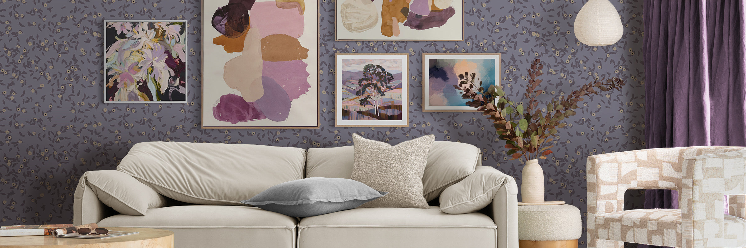 Shop purple wall art, purple wallpapers, and purple homewares online!
