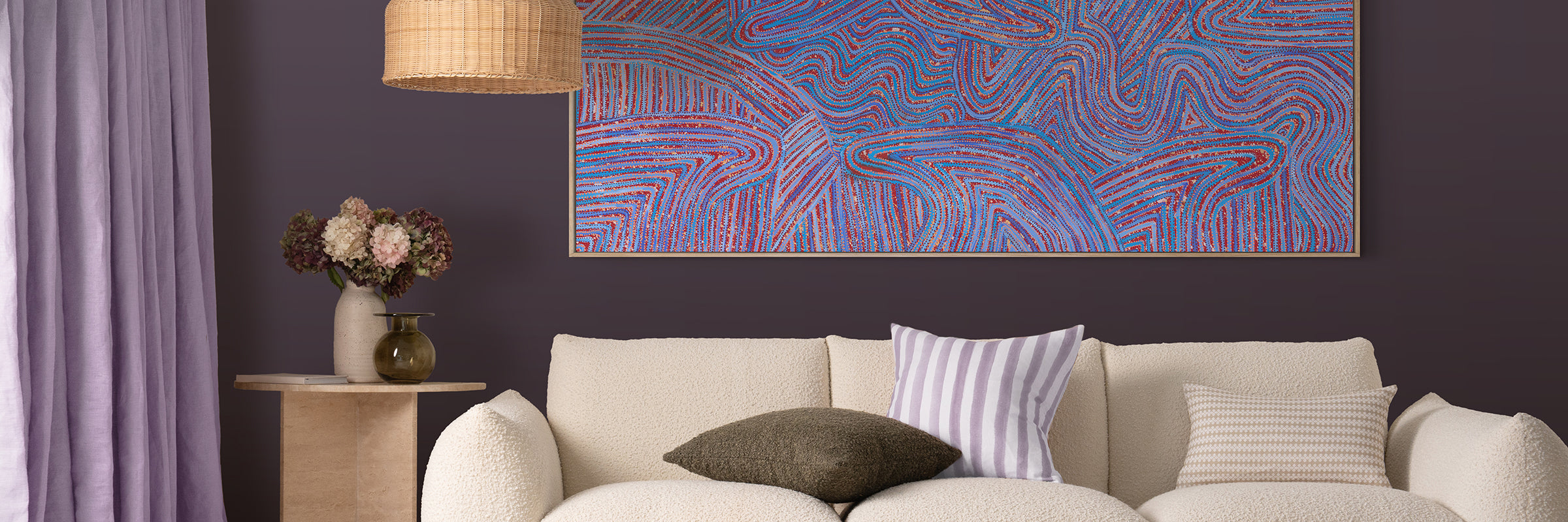 From rich purple Aboriginal art celebrating the mystical tones of Australian twilight landscapes to contemporary pieces perfect for any purple room decor, we offer an incredible range to suit every style. Create an aesthetic purple room that feels truly special, or embrace cute purple room ideas and light purple room ideas that inspire tranquility.