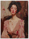 A Whirlwind Romance Canvas Art Print - This breathtaking artwork by Darren Palmer captures the delicate beauty of a poised woman, enveloped in soft hues of pink, brown, and beige. Her expression conveys a quiet strength and serene grace, drawing you into her world. This art print, with its vintage charm and emotive depth, brings a touch of timeless sophistication to any bedroom or living room. Perfect for various interior design styles, it adds an exquisite, romantic essence to any home decor.