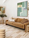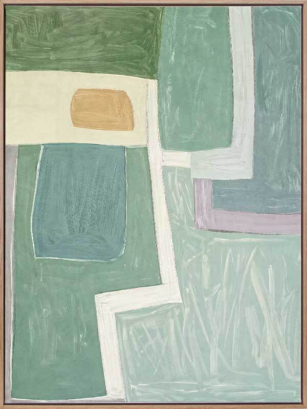 Abstract Gardens I Canvas Art Print - This abstract artwork, a symphony of green shades, brings a touch of mid-century modern elegance to any space. With its harmonious blend of green, sage, and blue hues, and organic shapes and lines, this wall art evokes a fresh, calming vibe - perfect for enhancing any living room or bedroom.