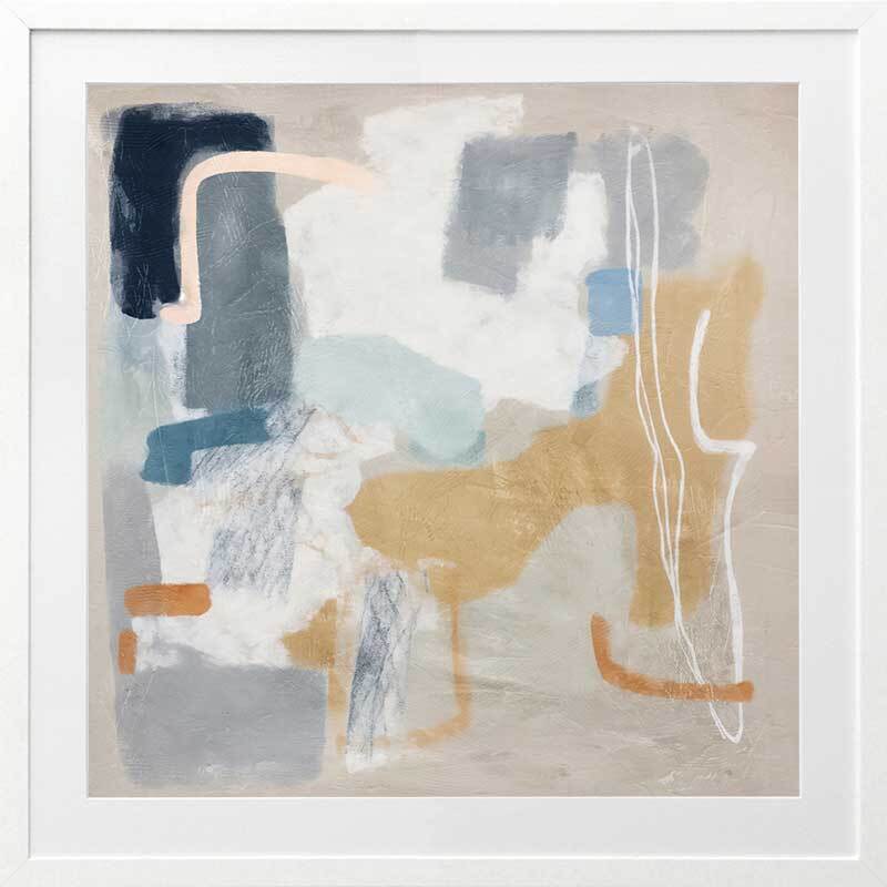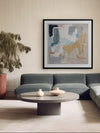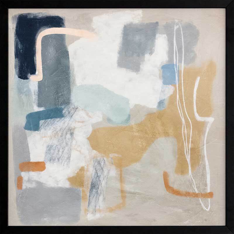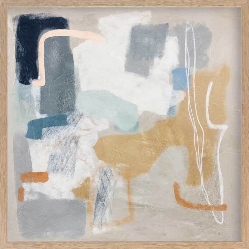 Abstract Thoughts I Framed Art Print - Let your abstract thoughts run wild with this calm, yet character-filled abstract artwork, featuring blurred brush strokes and random lines and shapes. Making a notable statement as an oversized piece, the palette of beige, grey, and blue gives it a versatile edge.