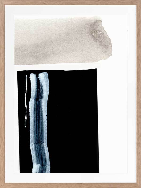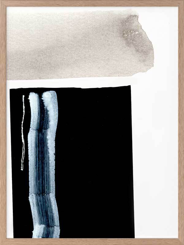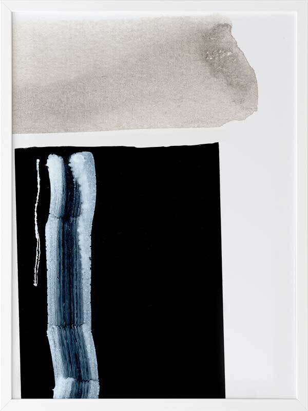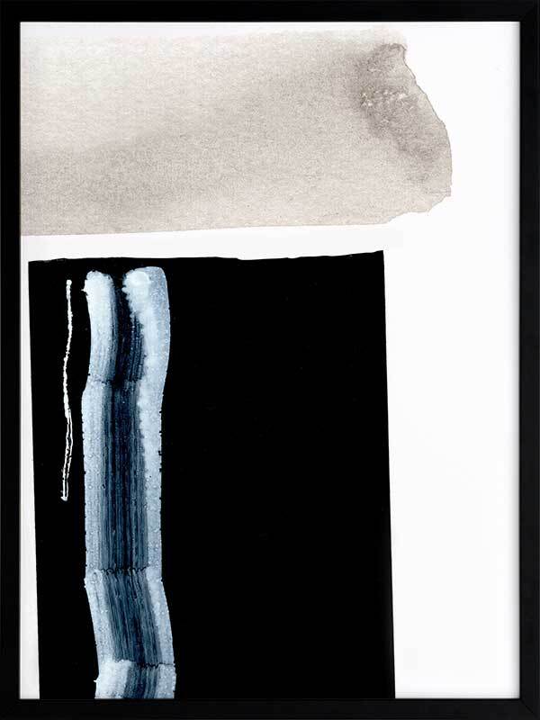 Adjacent 2 Framed Art Print - This minimalistic & bold art piece is full of personality and ready to make a statement in any room. Featuring abstract brush strokes in grey, black and a contrasting bright blue. Match with Adjacent 1 for a statement paired look.