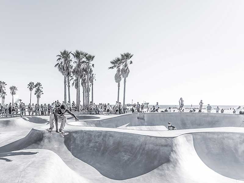 Air Walk - A light monochromatic photographic image of a skate park.