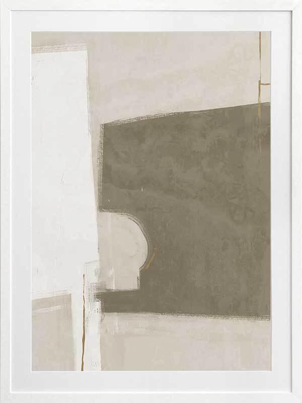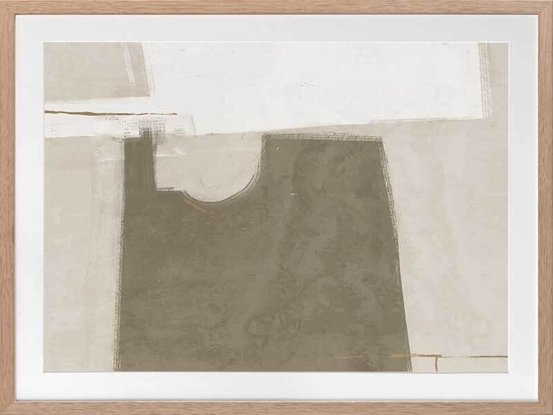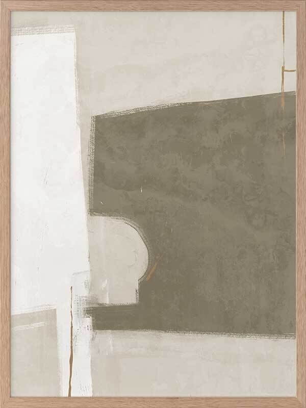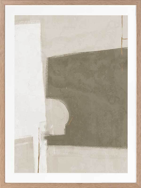 Always a Way Khaki Green Framed Art Print - Like two puzzle pieces finding their way to each other, this abstract artwork features a blend of curves and lines with visible brush strokes to create texture and interest in your space. A simple palette includes deep khaki green, creamy white, and sand.