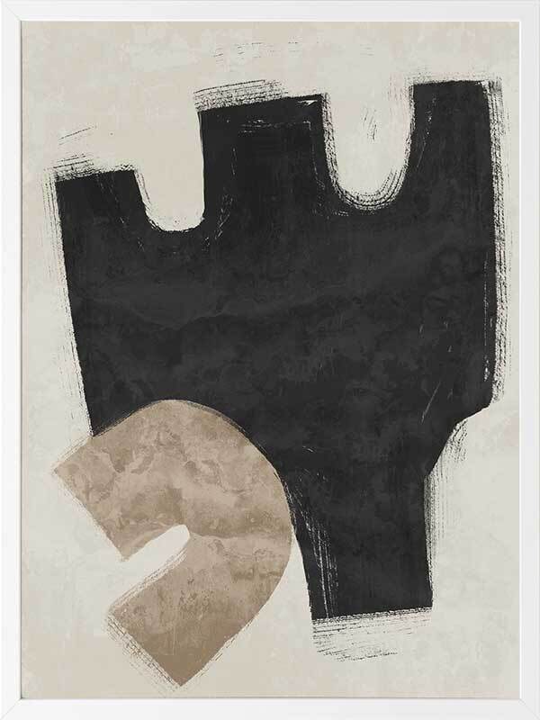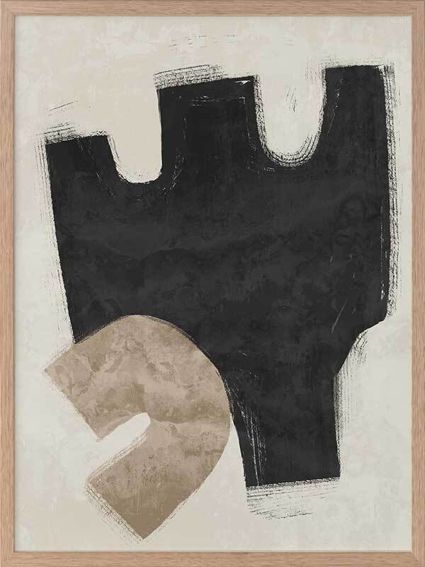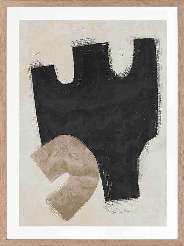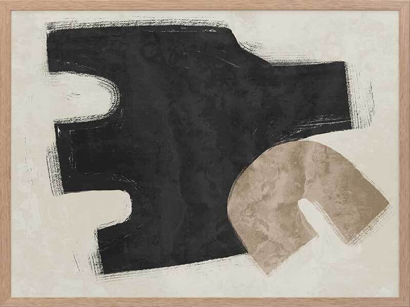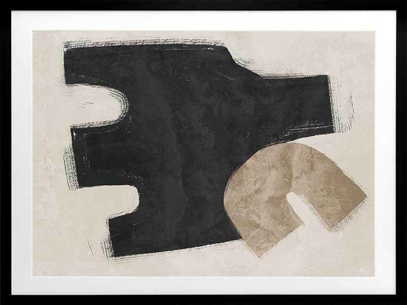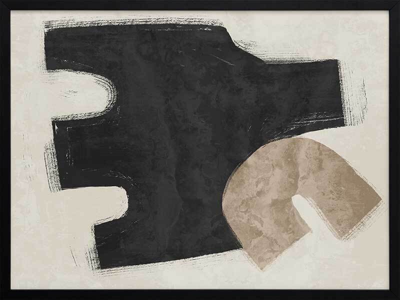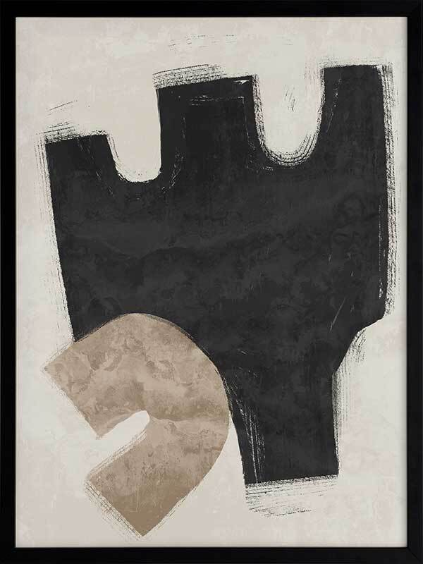 Amity Black Framed Art Print - Like an unlikely friendship, this abstract artwork brings together two opposing shapes, creating a juxtaposing look, perfect for making a statement and enlivening your space. Palette includes black, beige, and sand.
