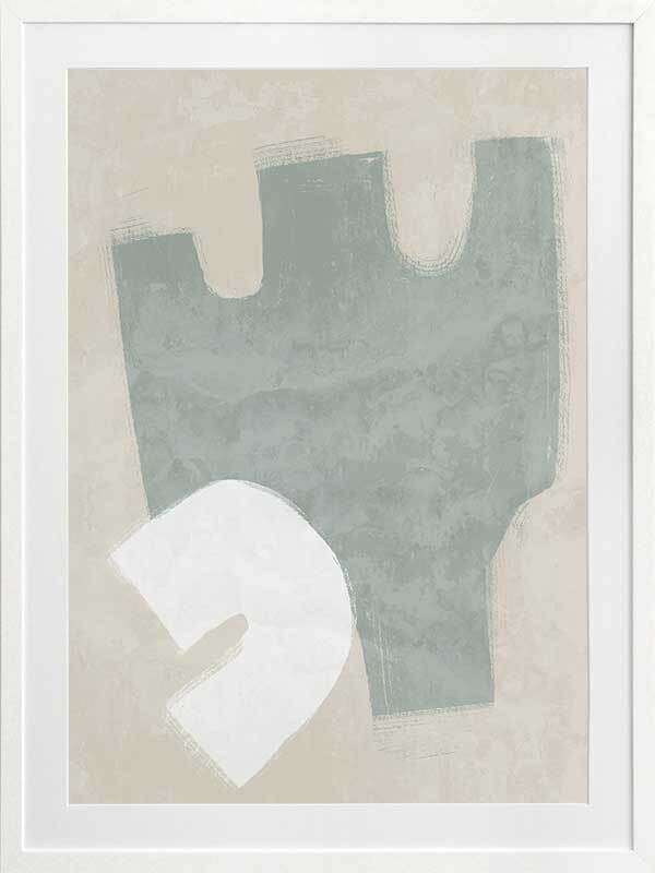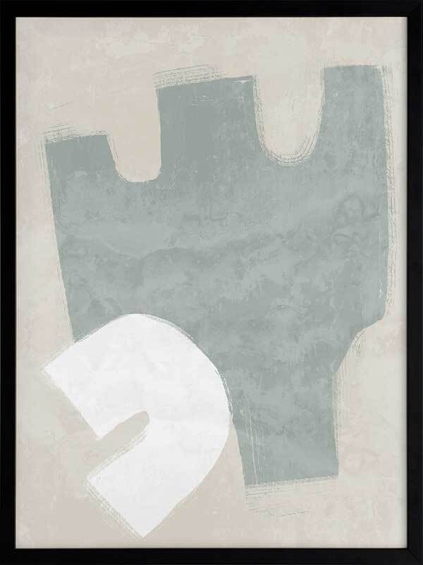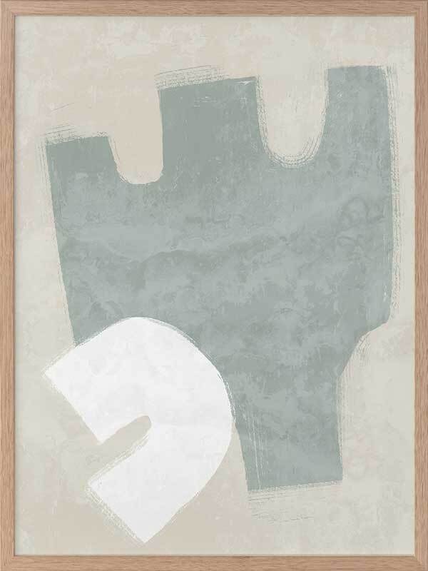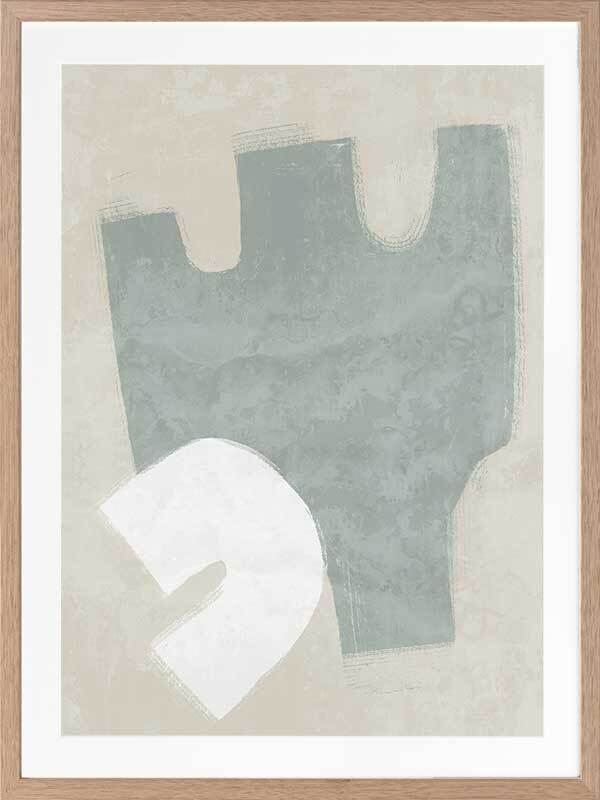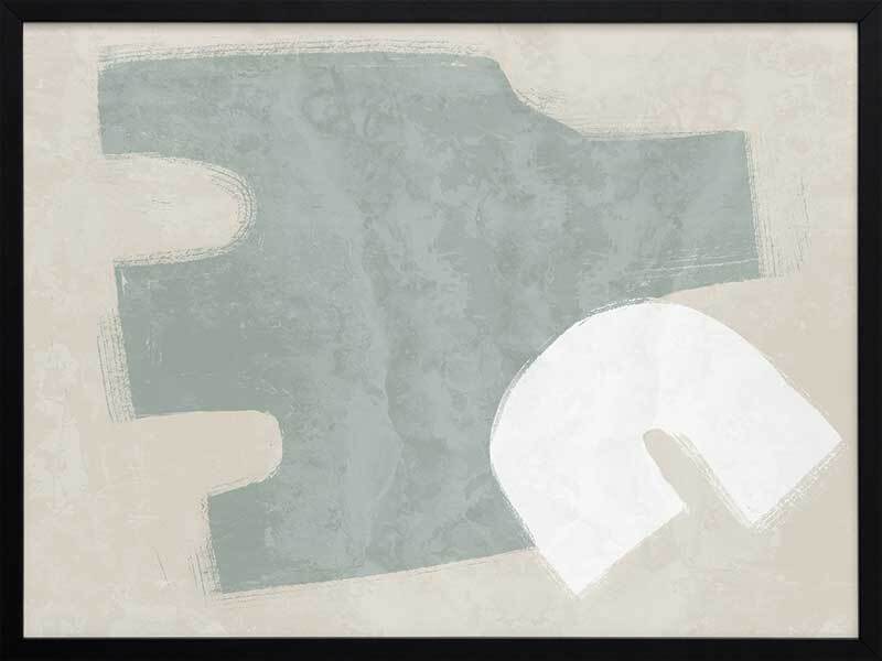 Amity Light Teal Framed Art Print - Like an unlikely friendship, this abstract artwork brings together two opposing shapes, creating a juxtaposing look, perfect for making a statement and enlivening your space. Palette includes light teal, white, and sand.