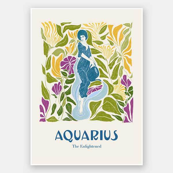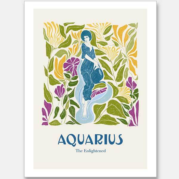 Aquarius Rectangle Poster - Popularly known for their optimism and self-reliance, the essence of a true Aquarian is exhibited in the soothing colours of this artwork. While the yellows and greens form the borders, the contrasting shades of blue and purple in the centre depict a serene and harmonious balance.