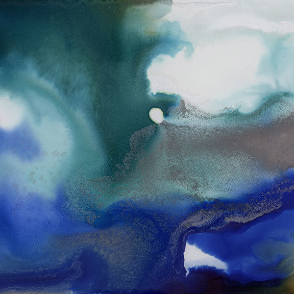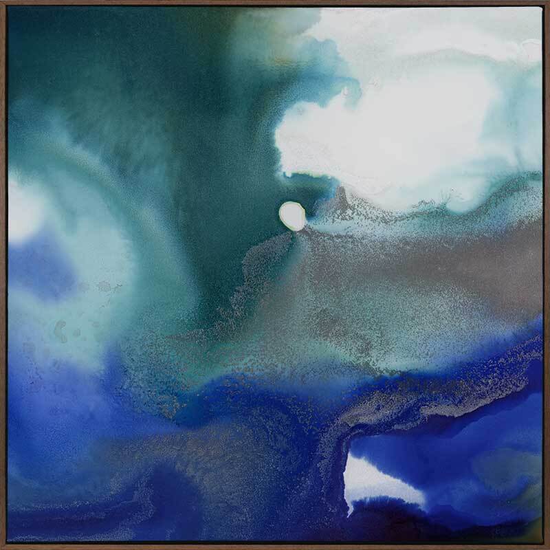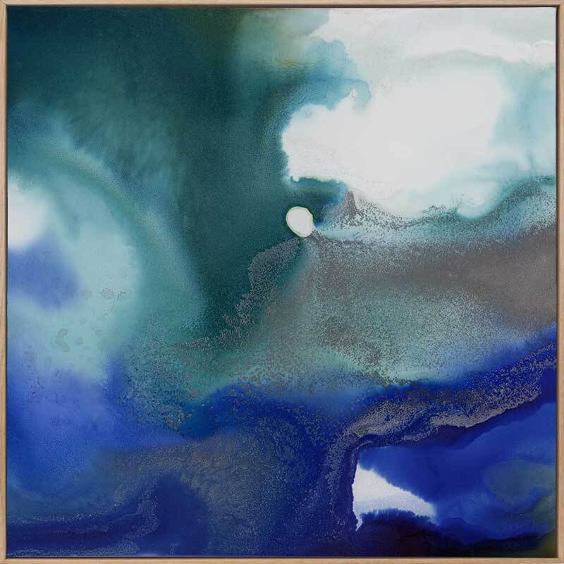 Aquatica I Canvas Art Print: An abstract artwork featuring an ocean-like marbling of vibrant indigo, with teal, grey and white. Pairs with Aquatica II & III. 2019 AUTUMN/WINTER COLLECTION: ODYSSEY