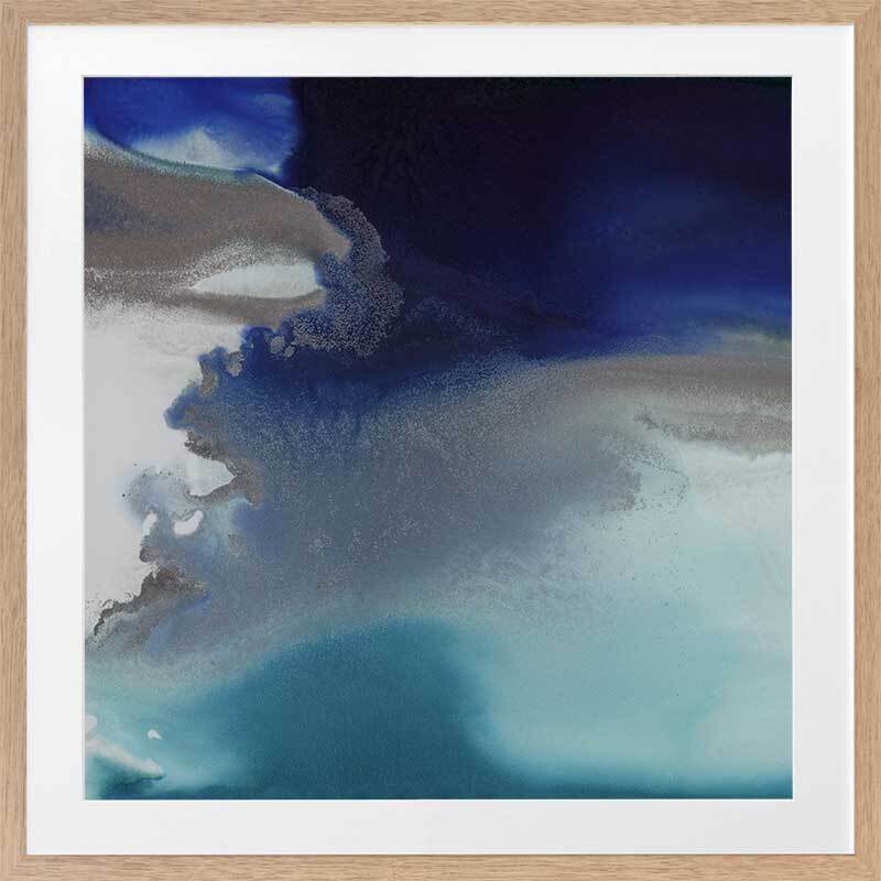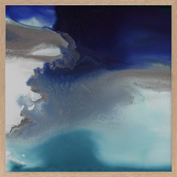 Aquatica II Framed Print: An abstract artwork featuring an ocean-like marbling of vibrant indigo, with teal, black, grey and white. Pairs with Aquatica I & III. 2019 AUTUMN/WINTER COLLECTION: ODYSSEY