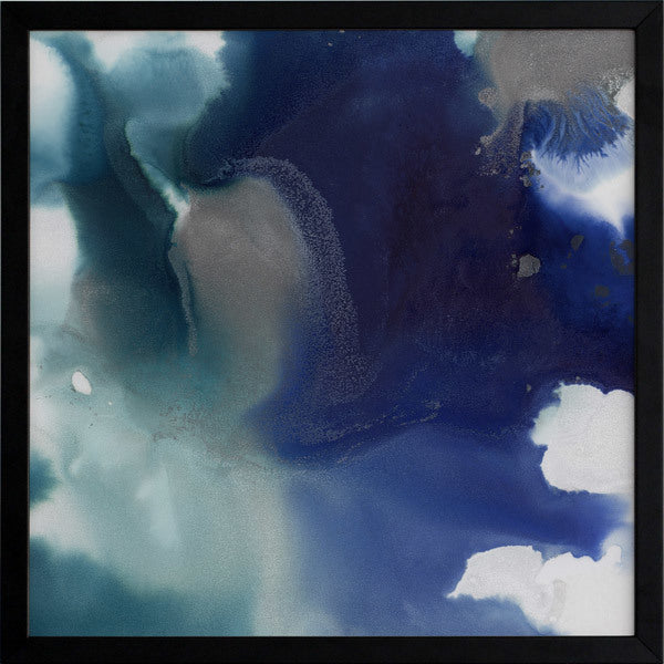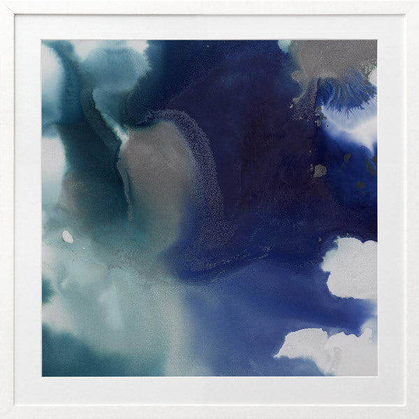 Aquatica III Framed Print: An abstract artwork featuring an ocean-like marbling of vibrant indigo, with deep teal, grey and white. Pairs with Aquatica I & II. 2019 AUTUMN/WINTER COLLECTION: ODYSSEY
