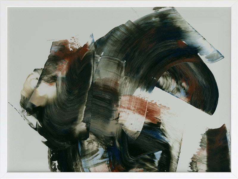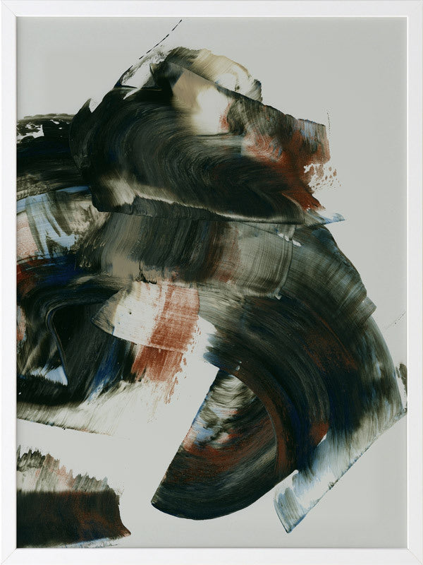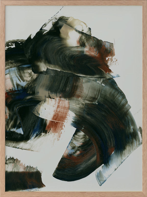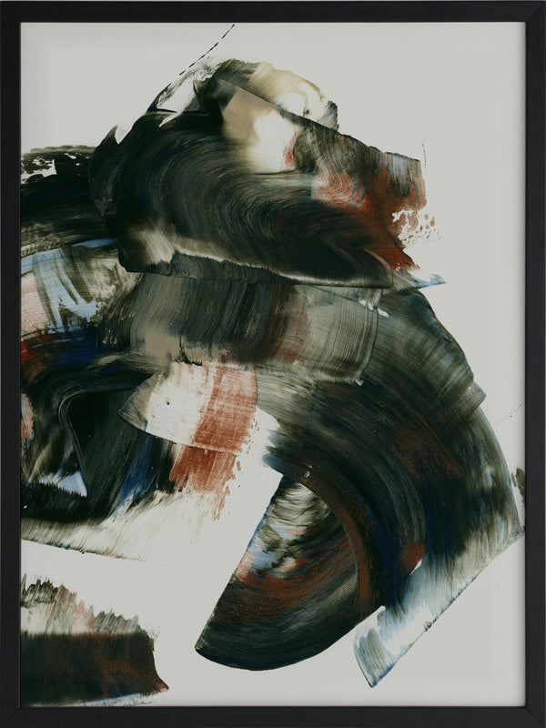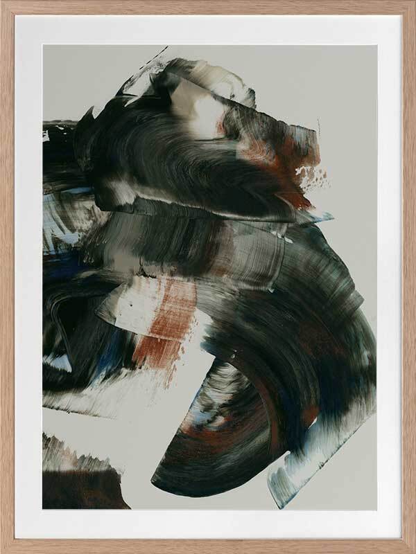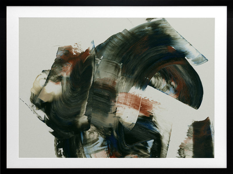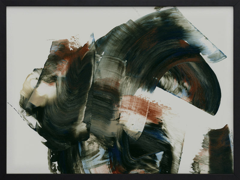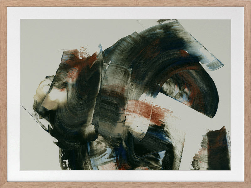Aramis Framed Print: An abstract artwork featuring broad, squeegee strokes in a dark, forest green, brown and blue palette. Pairs with Lovedale. 2019 AUTUMN/WINTER COLLECTION: ODYSSEY