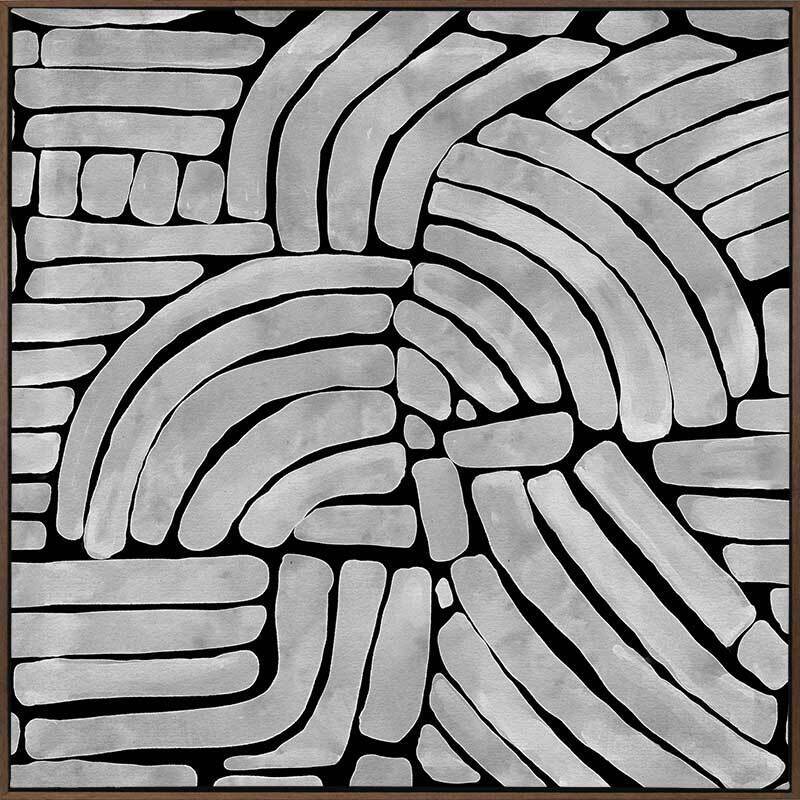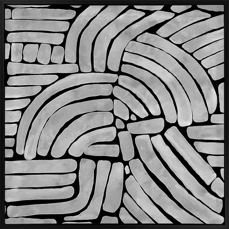 Arching Echoes Canvas Art Print - Simplicity is key with this unique contemporary piece. Painterly strokes make up curved lines and other random shapes for an asymmetrical feel. Featuring a rich black background and light-grey foreground, perfect for those who love a modern and minimal touch.