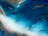 Ashore Canvas Art Print - A beautiful marbling of deep blue and white with gold accents - reminiscent of a coastal reef.