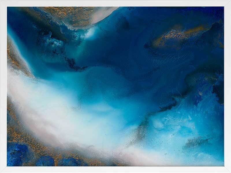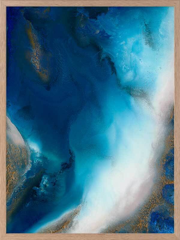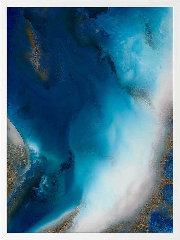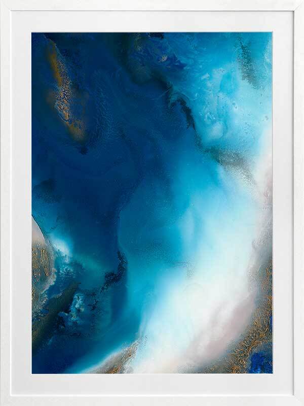 Ashore Framed Art Print - A beautiful marbling of deep blue and white with gold accents - reminiscent of a coastal reef. Petra Meikle de Vlas is an Australian Mixed Media Artist whose work is a combination of fine art, abstract and impressionism, and uses many mediums. Petra lives and works at her rainforest property in Cairns, located in Far North Queensland, and enjoys using the nearby Great Barrier Reef as a major source of inspiration and reference for her work. She's an artist who lives and breathes her craft, thrives on breaking the rules, taking risks, and is constantly perfecting techniques and exploring new ideas. Every new piece is a collaboration of many experiments - techniques learned and effects stumbled upon through many years of experience, as she harnesses and manipulates different mediums to create her art.