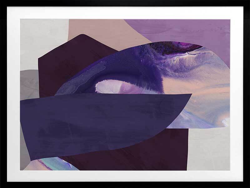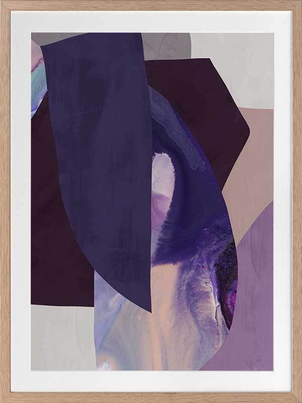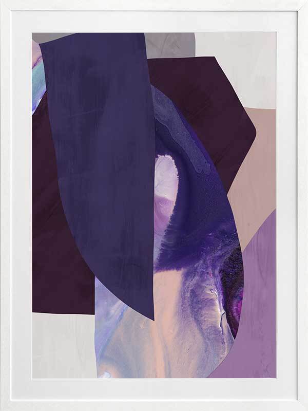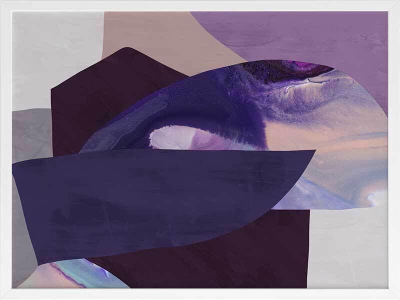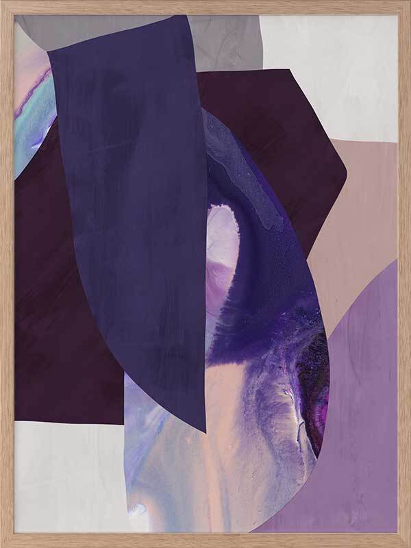 Astro I Framed Print: A striking abstract artwork featuring a galactic display of purple shapes and marbled textures. Pairs with Astro II. 2020 AUTUMN/WINTER COLLECTION: REVERIE