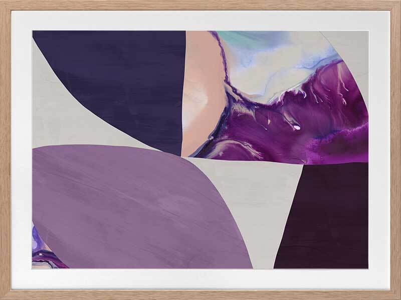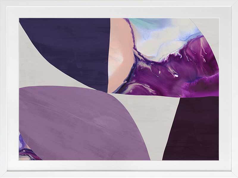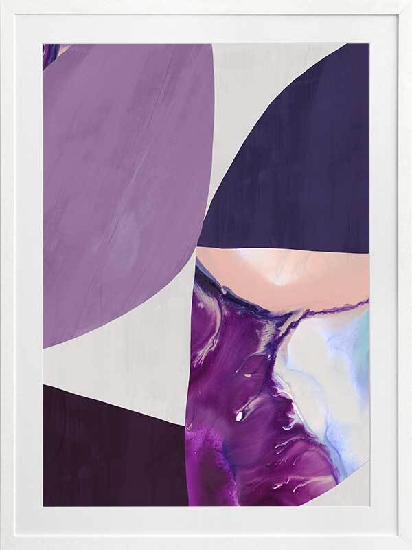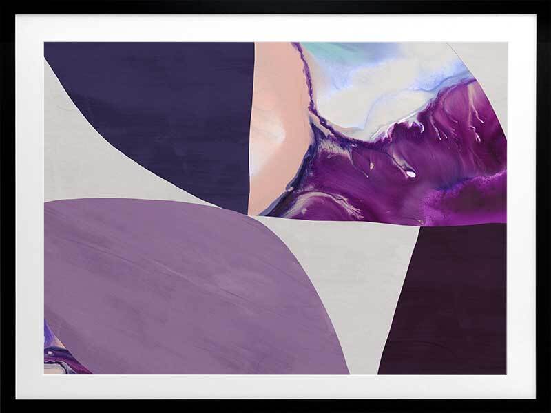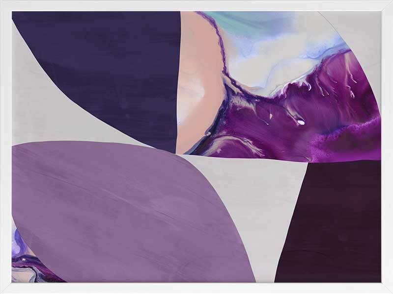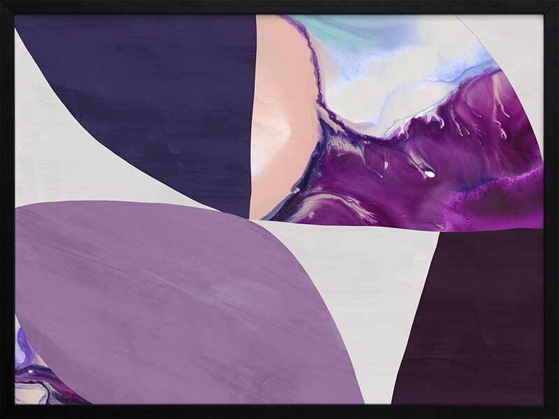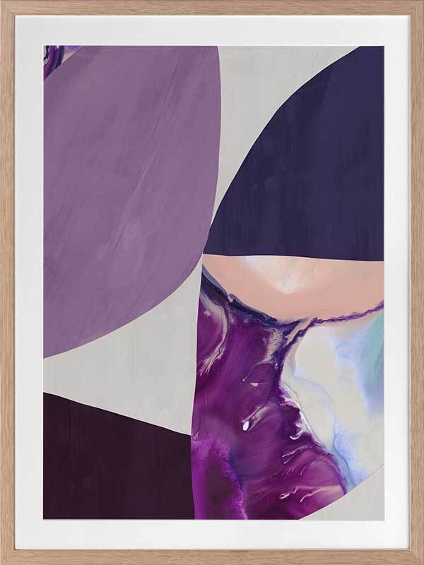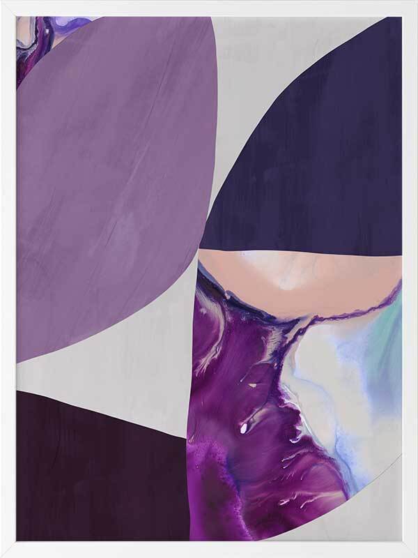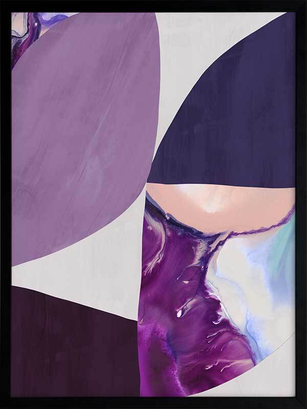 Astro II Framed Print: A striking abstract artwork featuring a galactic display of purple shapes and marbled textures. Pairs with Astro I. 2020 AUTUMN/WINTER COLLECTION: REVERIE