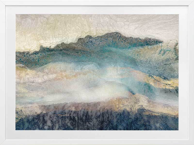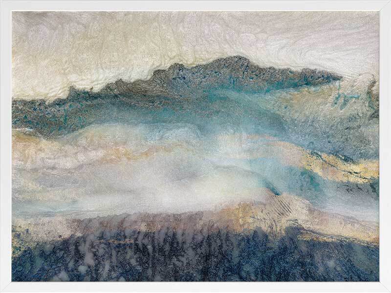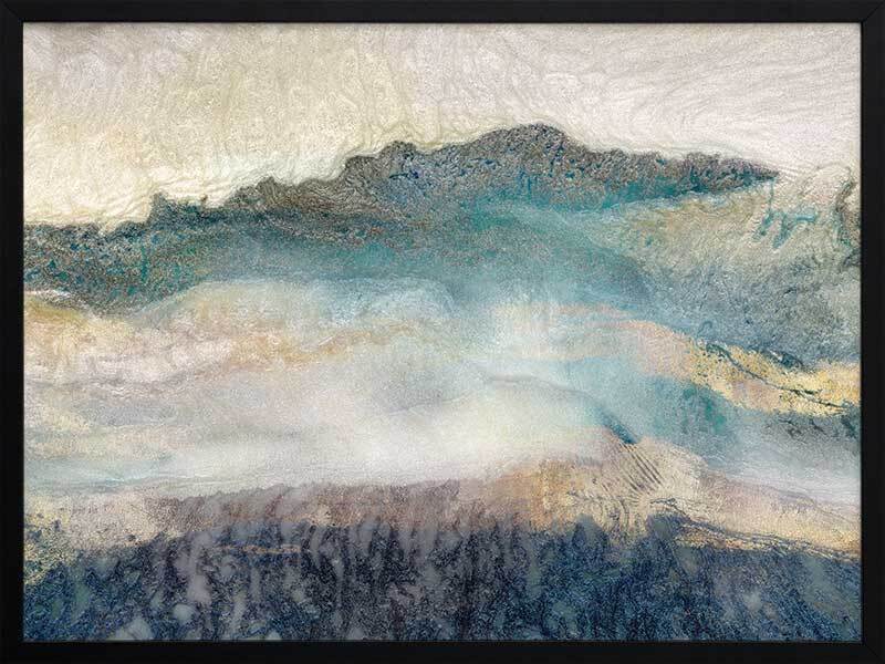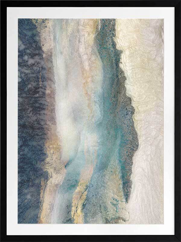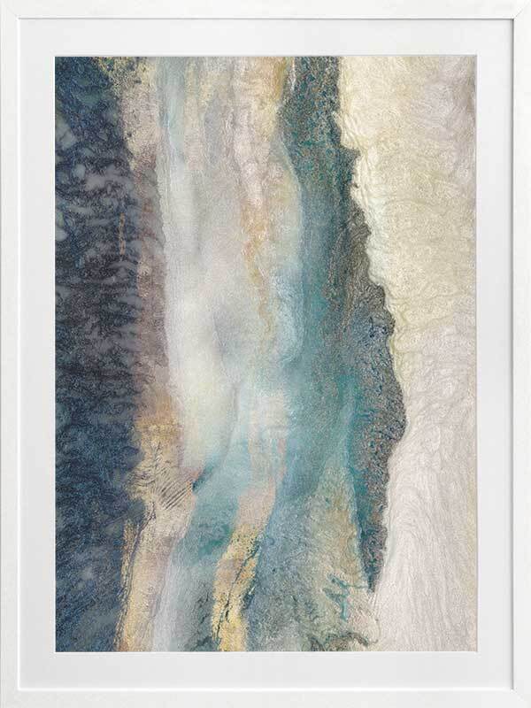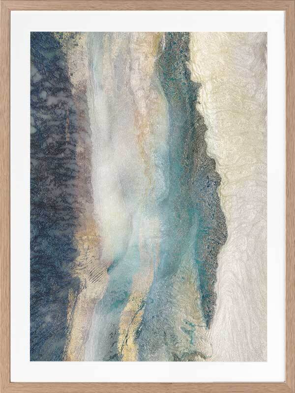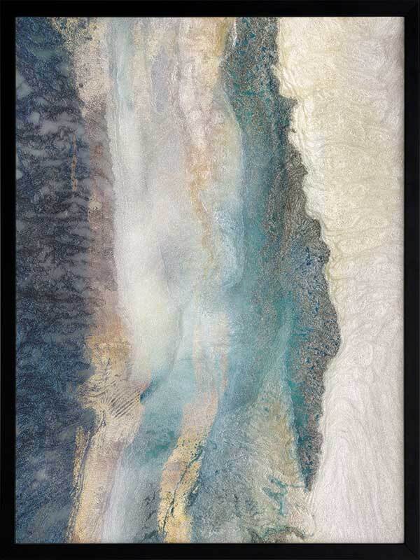 Atlantic Framed Art Print - For those who love landscapes, but want something a little different, this piece brings everything you need. Like an aerial view gazing down on the Atlantic Ocean as it meets a strip of land, the contrast of cool blues and warm golden beige shades brings this piece to life.