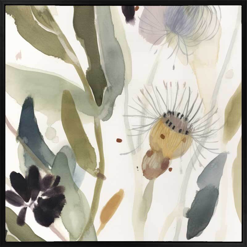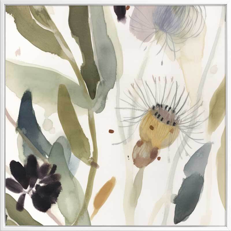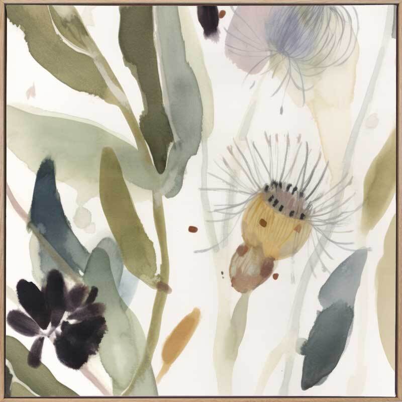 Aussie Florals Blue I Canvas Art Print - Delicate wildflowers emerge from soft, muted green foliage in this tranquil Australian floral and botanical painting. With gentle, flowing lines and subtle washes of colour, the artwork exudes a serene and natural elegance. Ideal for bringing a touch of the outdoors inside, this piece creates a calming atmosphere in any setting.