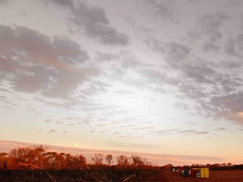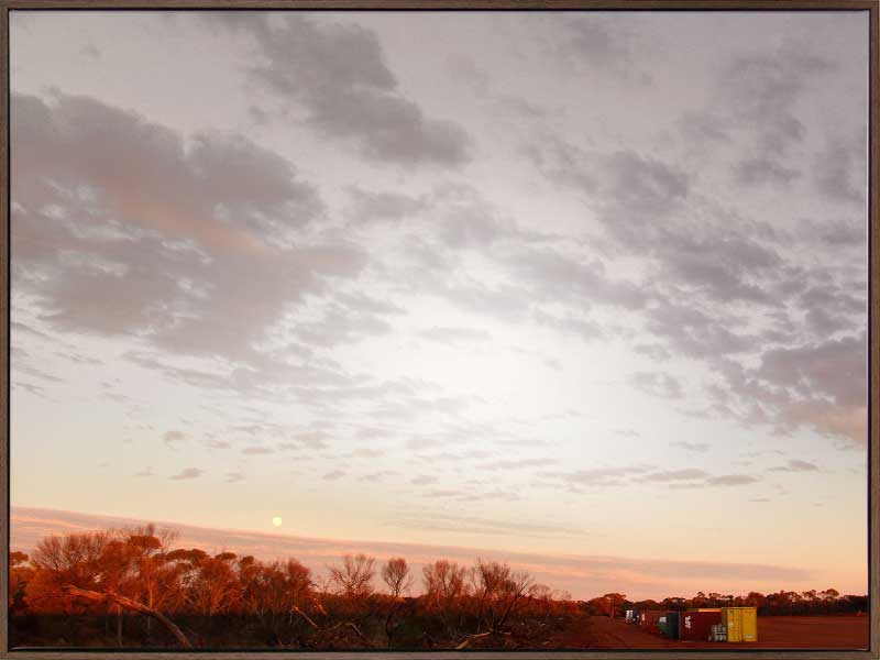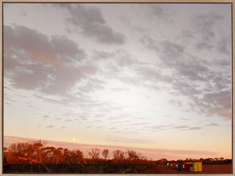 Australian Outback Poster Print. Claim that remote beauty in this photographic art work with a vast view of the gently clouded sky at sunrise set against the red landscape of the Australian Outback in your space.