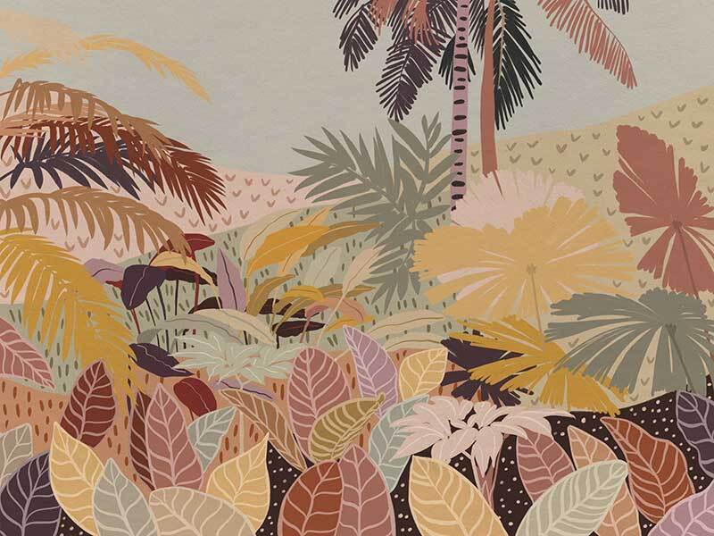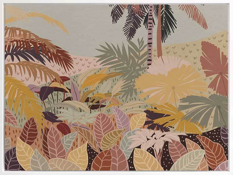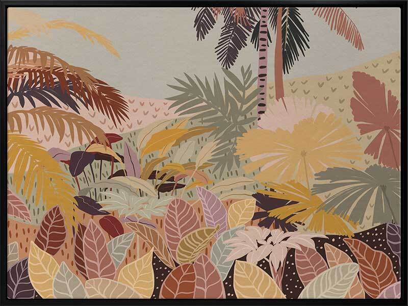 Autumn on the Island Canvas Art Print - Warm, textural and interesting, this illustrated artwork combines boho and tropical with an array of layered botanicals and foliage in a Autumnal inspired colour palette.
