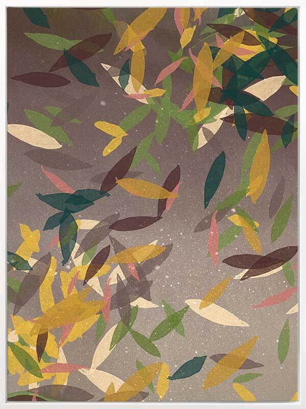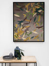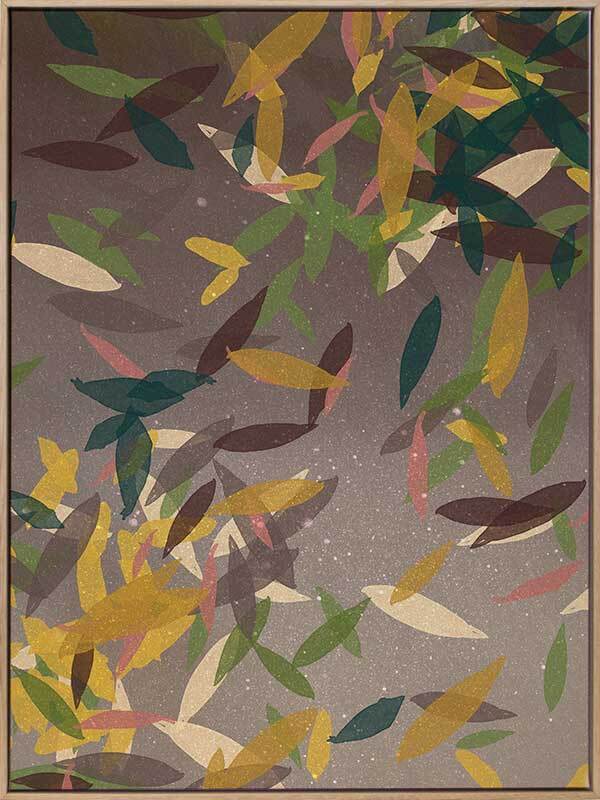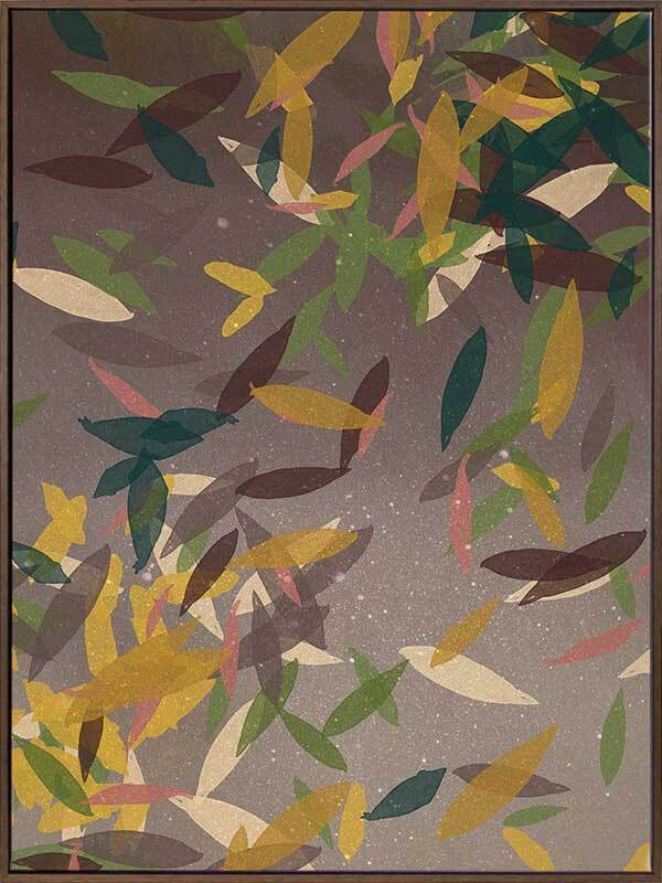 Autumn Rain Canvas Art Print: A beautifully textured artwork, featuring falling leaves in a warm brown colour palette, with pops of yellow, green and cream. 2018 SPRING/SUMMER COLLECTION: REMINISCE