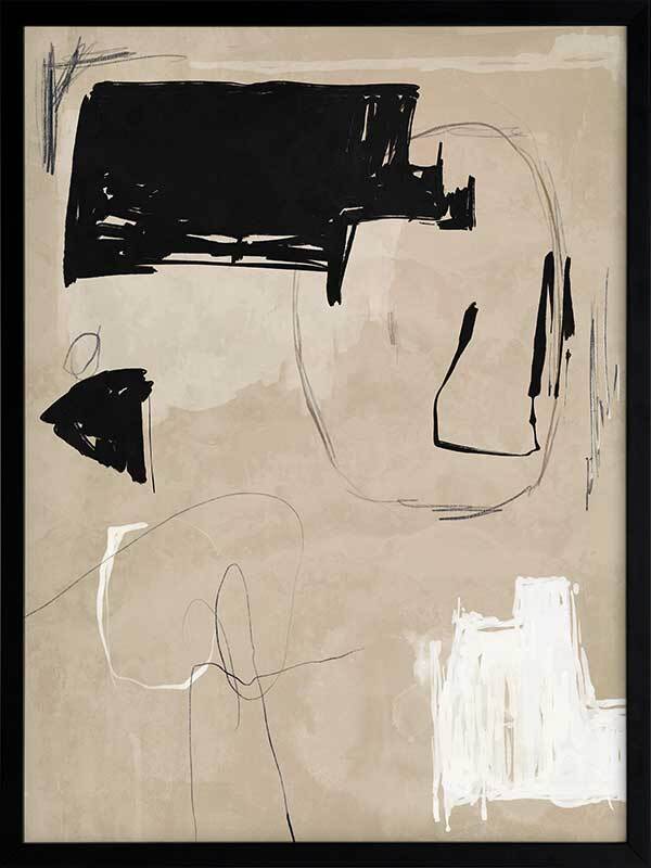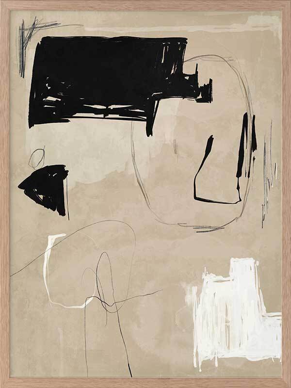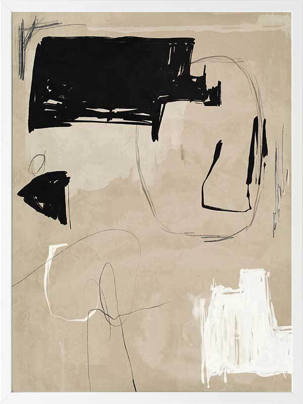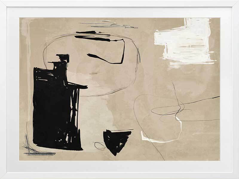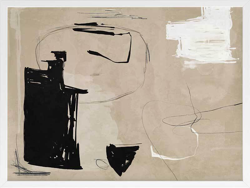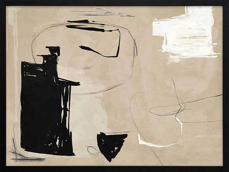 Back To The Drawing Board III Framed Art Print - Resembling an artist's sketches as they explore their creative mind, this abstract piece features chaotic line work and random shapes to create the perfect piece to add character to your space. Palette includes beige tones, white, and black.