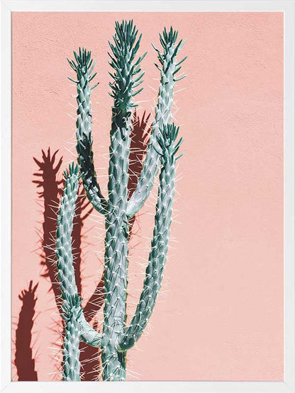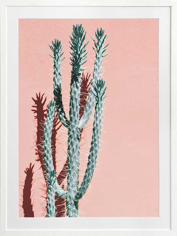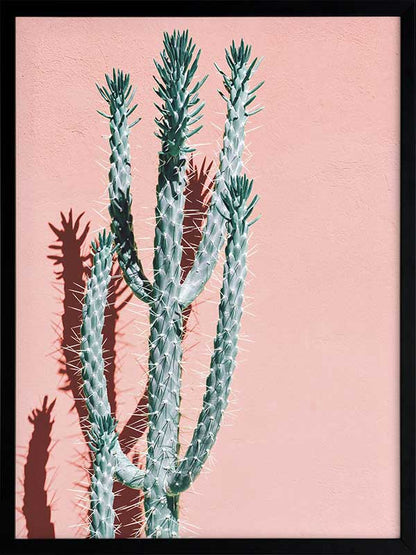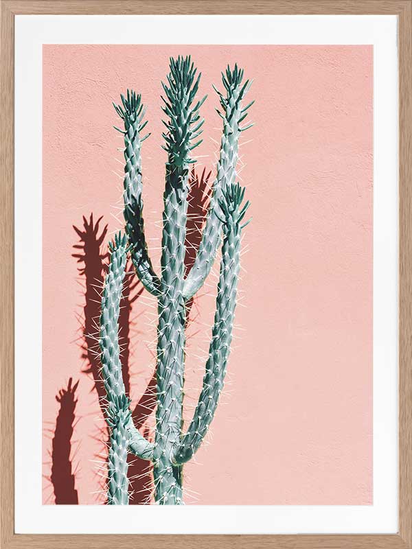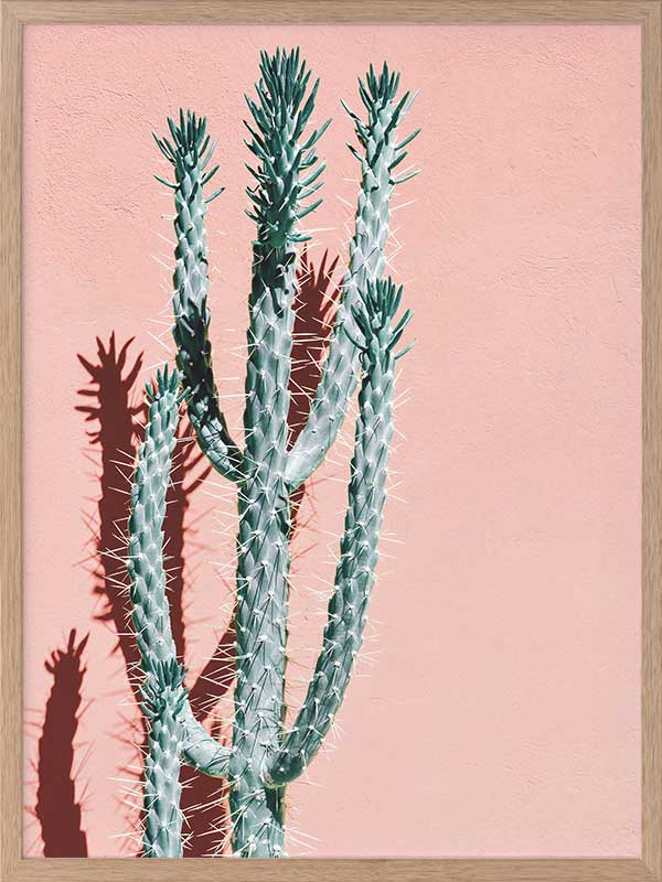 Baja - A distinct photographic image of a tall green cactus against a pink peach background.