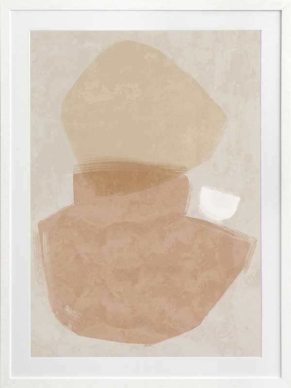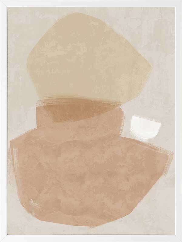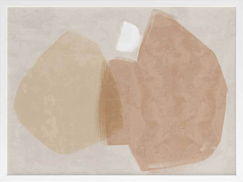 Balanced Blush Framed Art Print - This abstract artwork is the easiest way to bring a subdued sense of texture and movement into your space. Featuring overlapping shapes and brush strokes, this piece uses a minimalistic palette of blush-toned beige, regular beige, and sand.