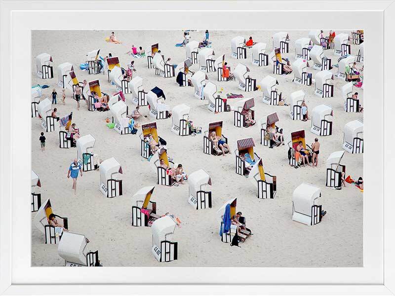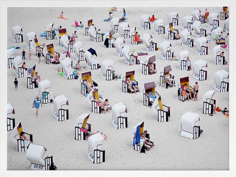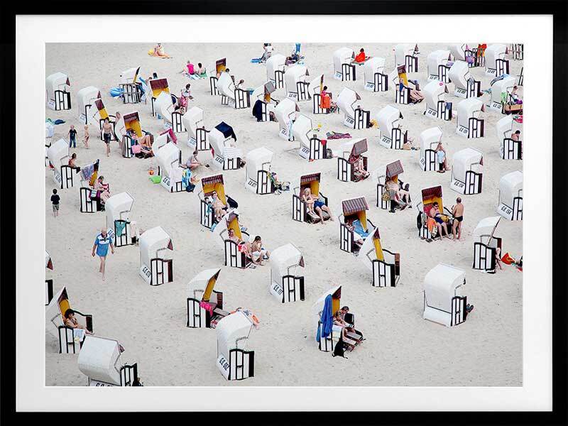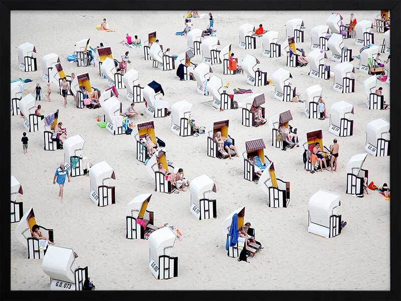 Bathing Box Framed Print - A fun photograhic art print showing the bright colours of the personal bathing boxes lined up in rows on the beach. You can imagine just how much joy the people are having whilst taking a day out to the seaside. This wall art brings pops of colour that stand out against the soft white sands they sit in. THE CURATED SERIES A handpicked gallery of wall art photography that is daringly and quirky, these photographic pieces are exploding with richness of colour and texture.