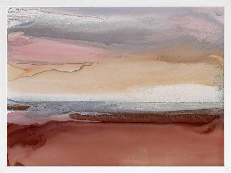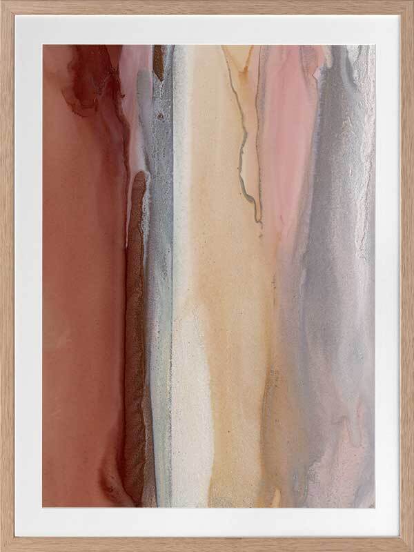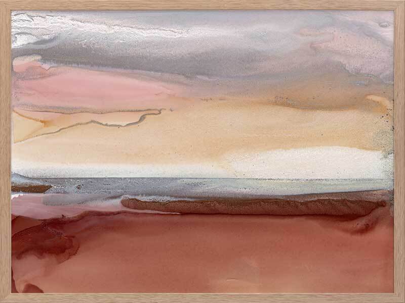 Bay of Fires Framed Print: An abstract artwork featuring a beautiful ink marbling of copper, pink and grey. 2020 AUTUMN/WINTER COLLECTION: REVERIE