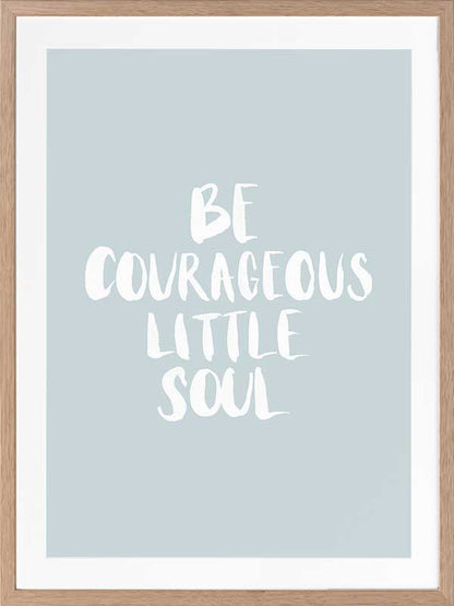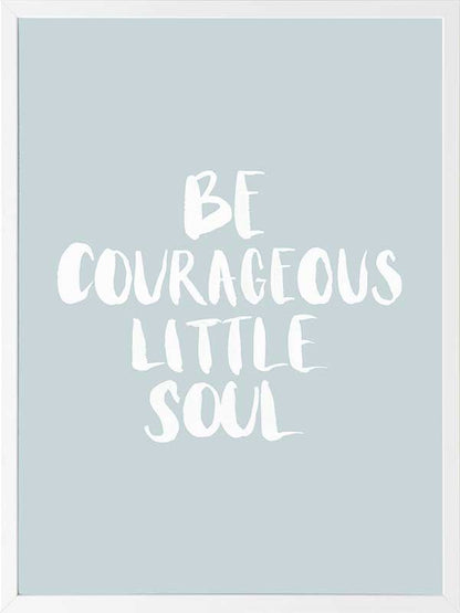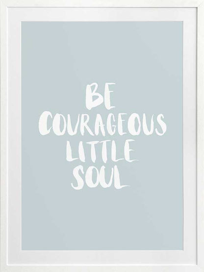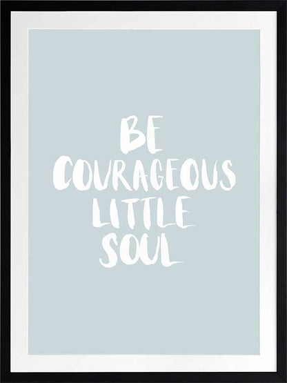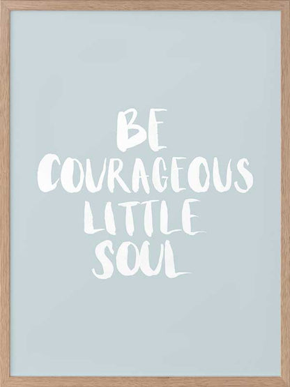 Be Courageous Smoke - A typographic artwork featuring the phrase "Be courageous little soul" in white font against a muted teal background.