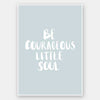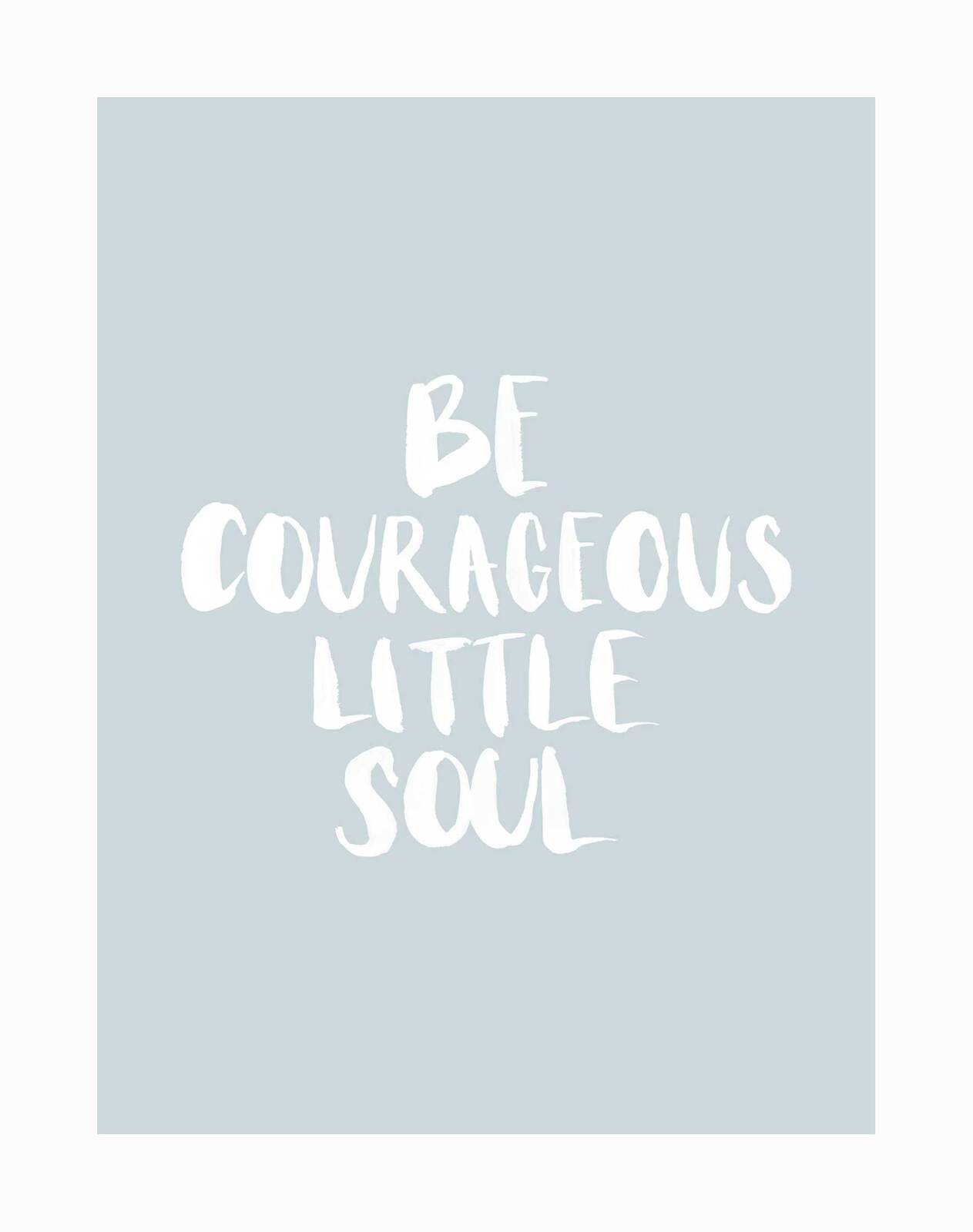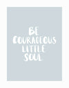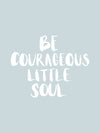 Be Courageous Smoke - A typographic artwork featuring the phrase "Be courageous little soul" in white font against a muted teal background.
