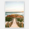 Beach Boardwalk Unframed Art Print - Add depth to any space with this coastal photographic wall art, featuring a never-ending boardwalk at the beach. With its vintage photography vibes, this art print brings warm energy with orange, beige, green, and blue shades.