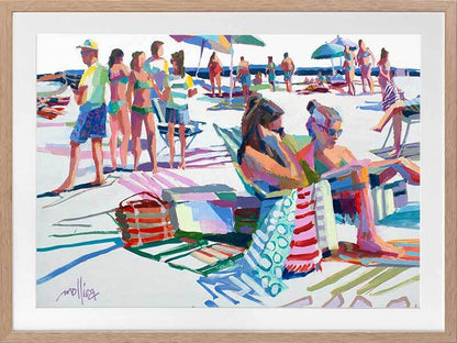 Beach Party Framed Art Print - An abstract take on a hot summer's day, this piece uses bright, lively colours to capture the warm feeling we all get relaxing beachside with our loved ones, and not a worry in the world. Vivid pinks, yellows, oranges, and reds blend with soft greens, purples and blues, all against a soft white backdrop to suit neutral shades in your home.