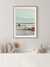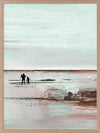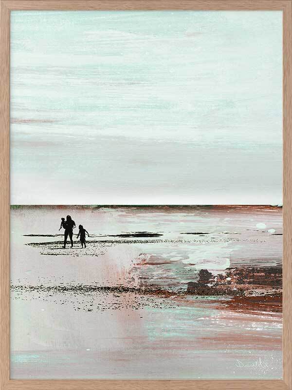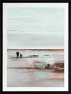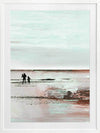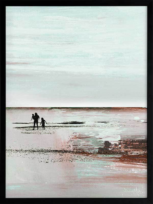 Beach Walk 2 Framed Art Print - Bring warmth and comfort to any room with this gorgeous art print. A silhouette of an adult and two children walk along a pastel pink and teal beach with elements of red and rust.