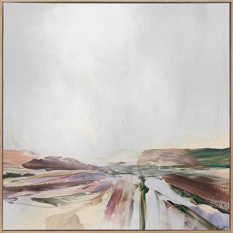 Beauty Canvas Art Print - Get a sense of tranquility and peace with this beautiful abstract art print. Featuring both muted and warm colour palettes to create an abstract landscape of colours. Olive green, rust red, pinks and purples sit amongst a muted grey canvas.