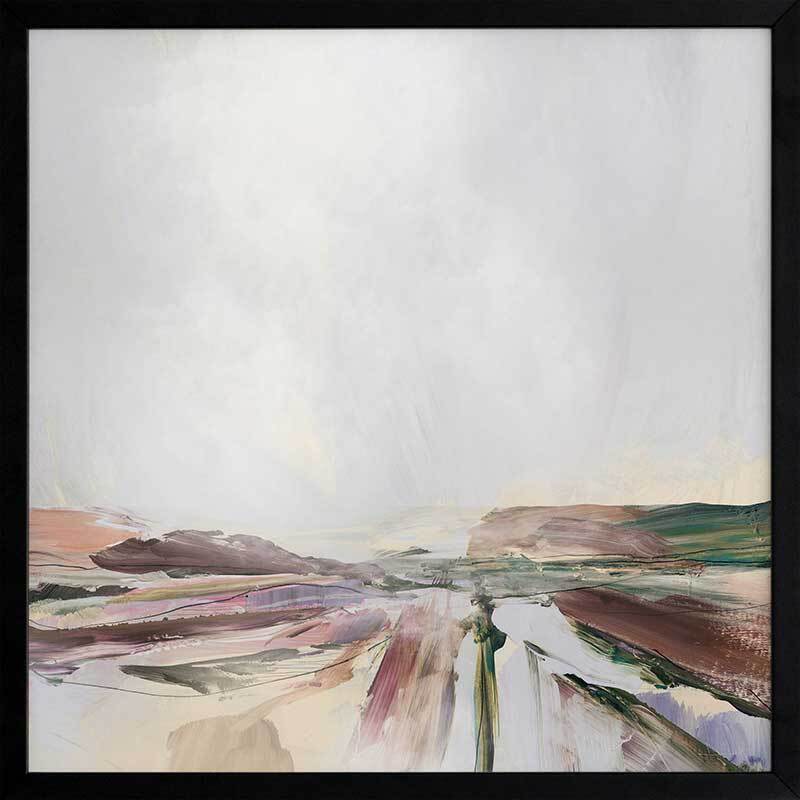 Beauty Framed Art Print - Get a sense of tranquility and peace with this beautiful abstract art print. Featuring both muted and warm colour palettes to create an abstract landscape of colours. Olive green, rust red, pinks and purples sit amongst a muted grey canvas.
