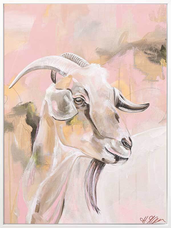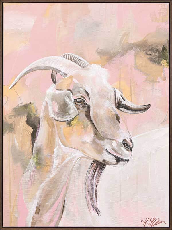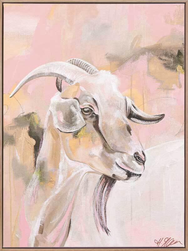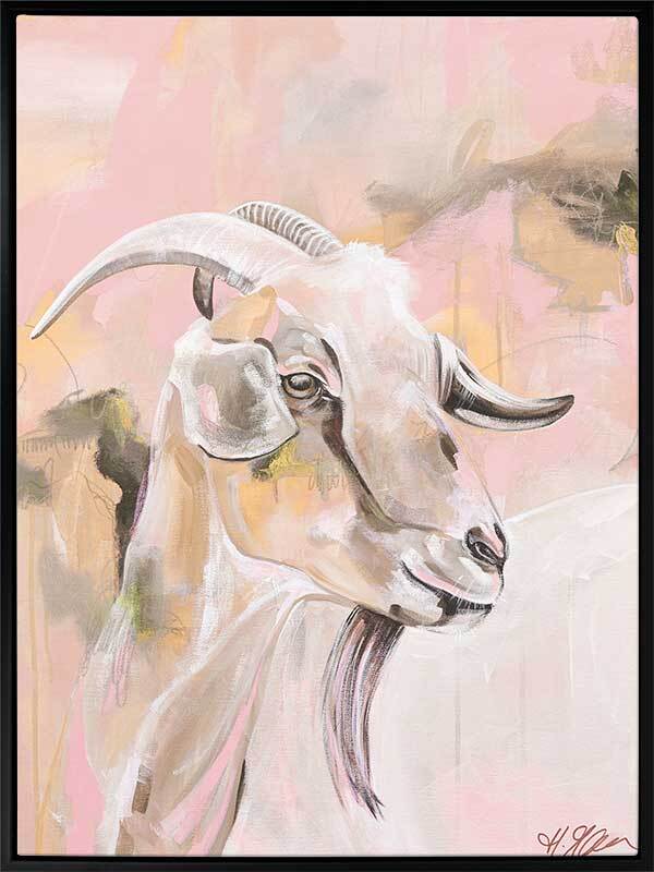 Begin Again Pastel Pink Canvas Art Print - Using darker shades to create depth and movement, this piece takes all the best elements of abstract and realism to create a unique, emotive image. Featuring a noble goat standing tall and proud, this piece uses a pastel pink palette with touches of soft yellow and brown to brighten any space.